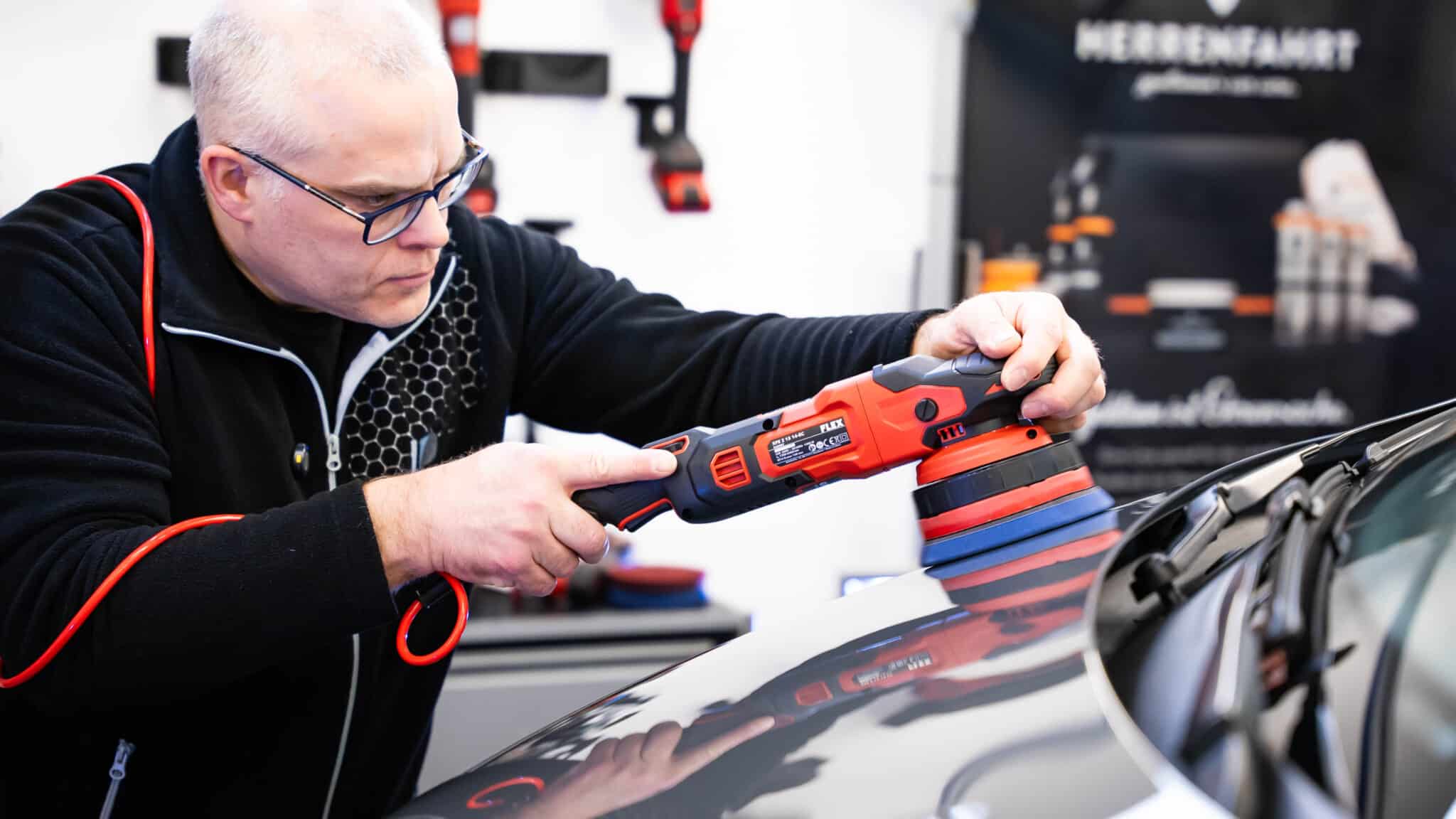 In Verbindung mit dem REFLECTED The POLISHING Oil lassen sich auch hier sehr schöne Ergebnisse erzielen besonders im Bereich des Finishs. Einfach einen Schuss ins Pad und die Politur lange ausfahren, hier ist man dann annähernd Hologrammfrei selbst bei starken Lackabtrag.